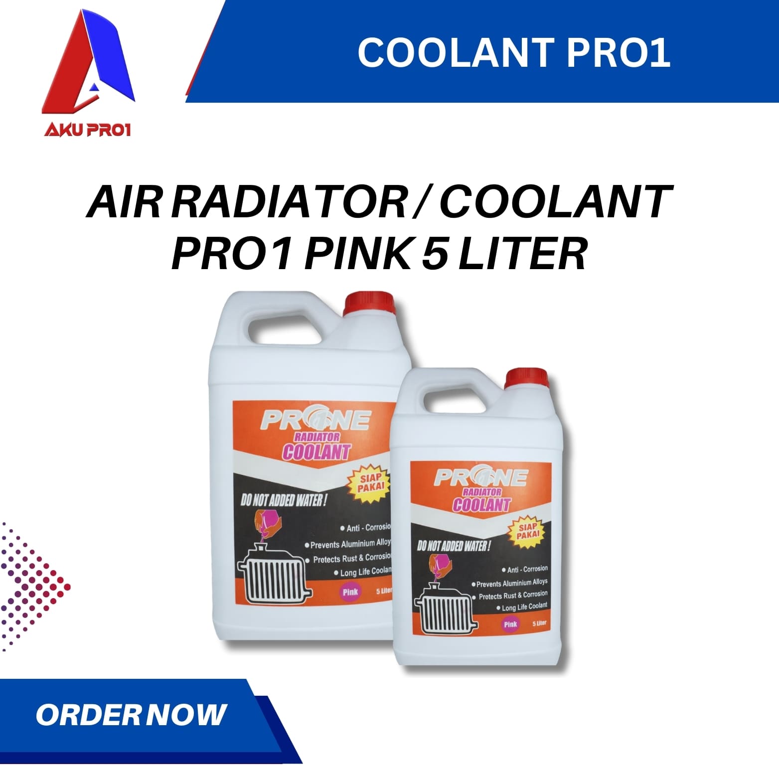 Air Radiator Coolant Pro1 memiliki titik didih cukup tinggi yaitu mencapai 130 derajat celcius. Tidak hanya mencegah mesin overheat, air pendingin ini juga mampu mencegah terjadinya boil over dan freeze up. Bahkan coolant Pro1 juga di klaim mampu menjaga performa AC mobil tetap pada kondisi terbaiknya.